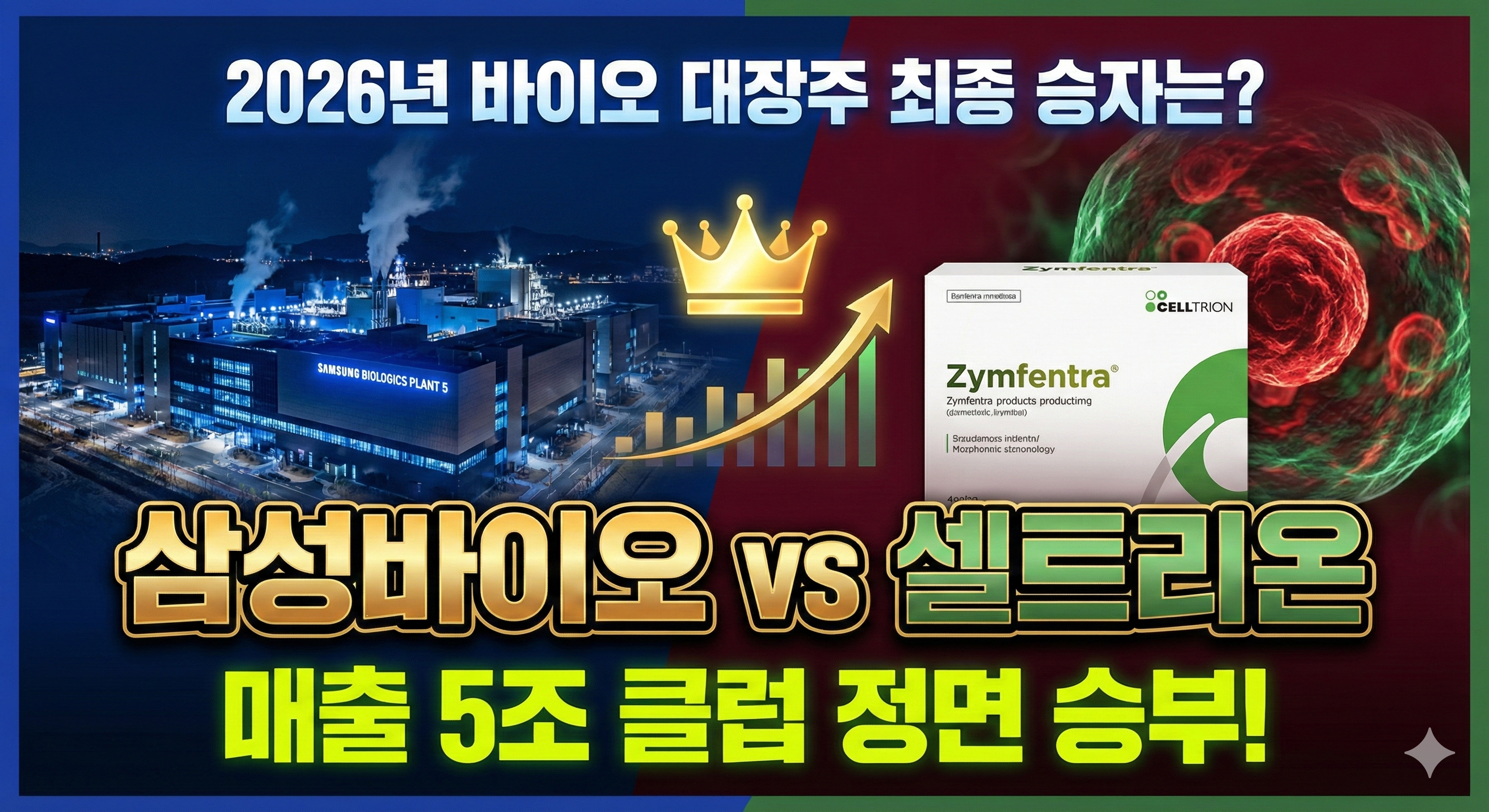 안녕하세요! K-바이오를 사랑하는 투자자 여러분. 드디어 2026년, 한국 바이오 산업의 양대 산맥인 삼성바이오로직스와 셀트리온이 역사적인 '연 매출 5조 원' 고지를 두고 정면 충돌합니다. 🔥