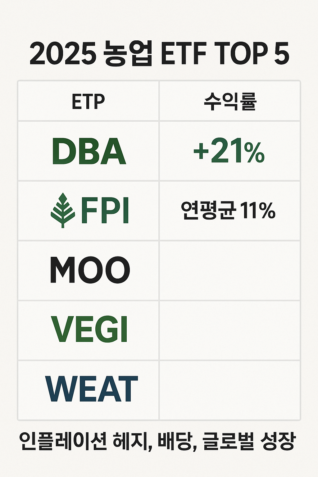 🏆 2025년 주목할 농업 ETF TOP 5