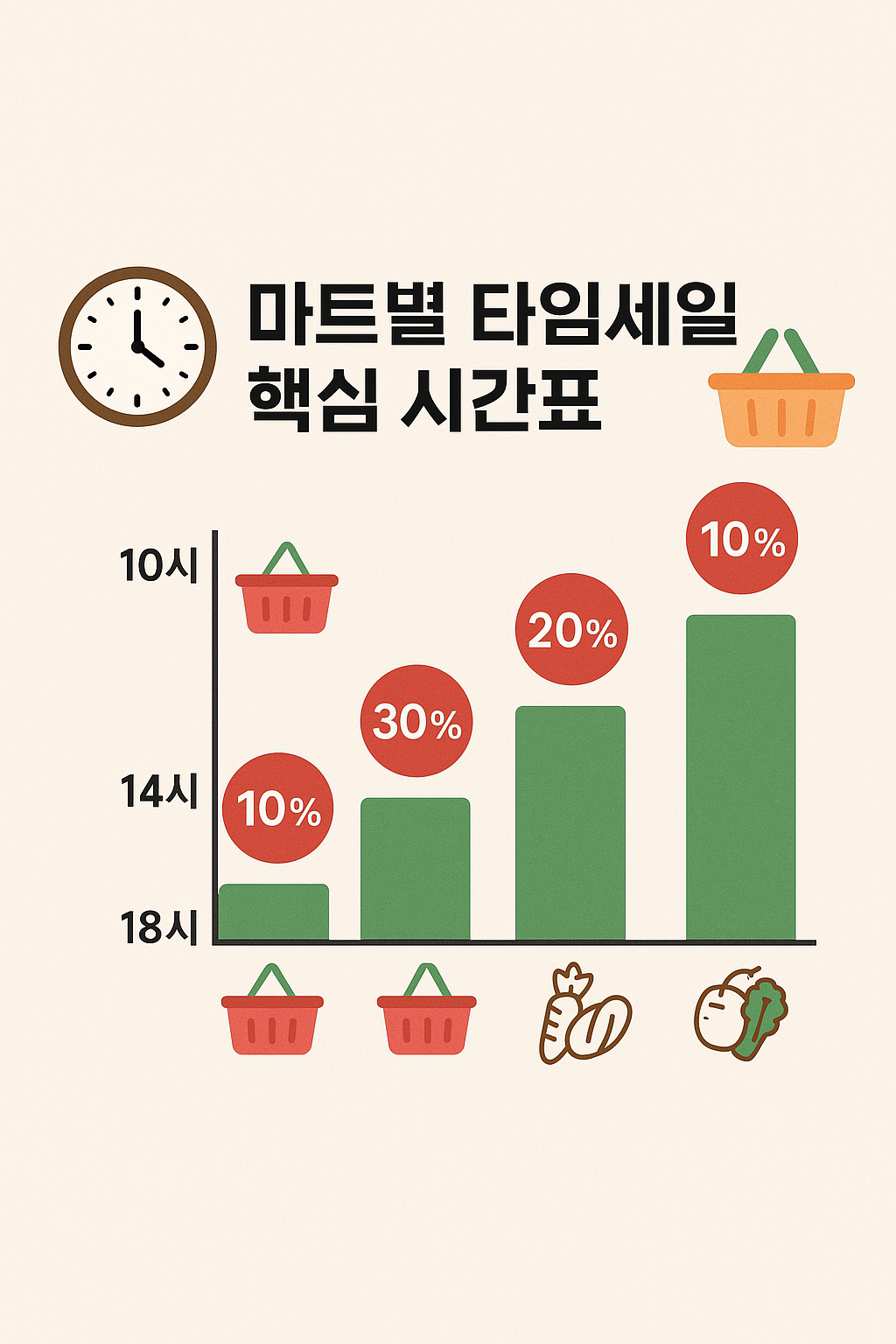 마트별 타임세일 시간대를 알면, 같은 품목을 ‘반값’에 살 수 있습니다!