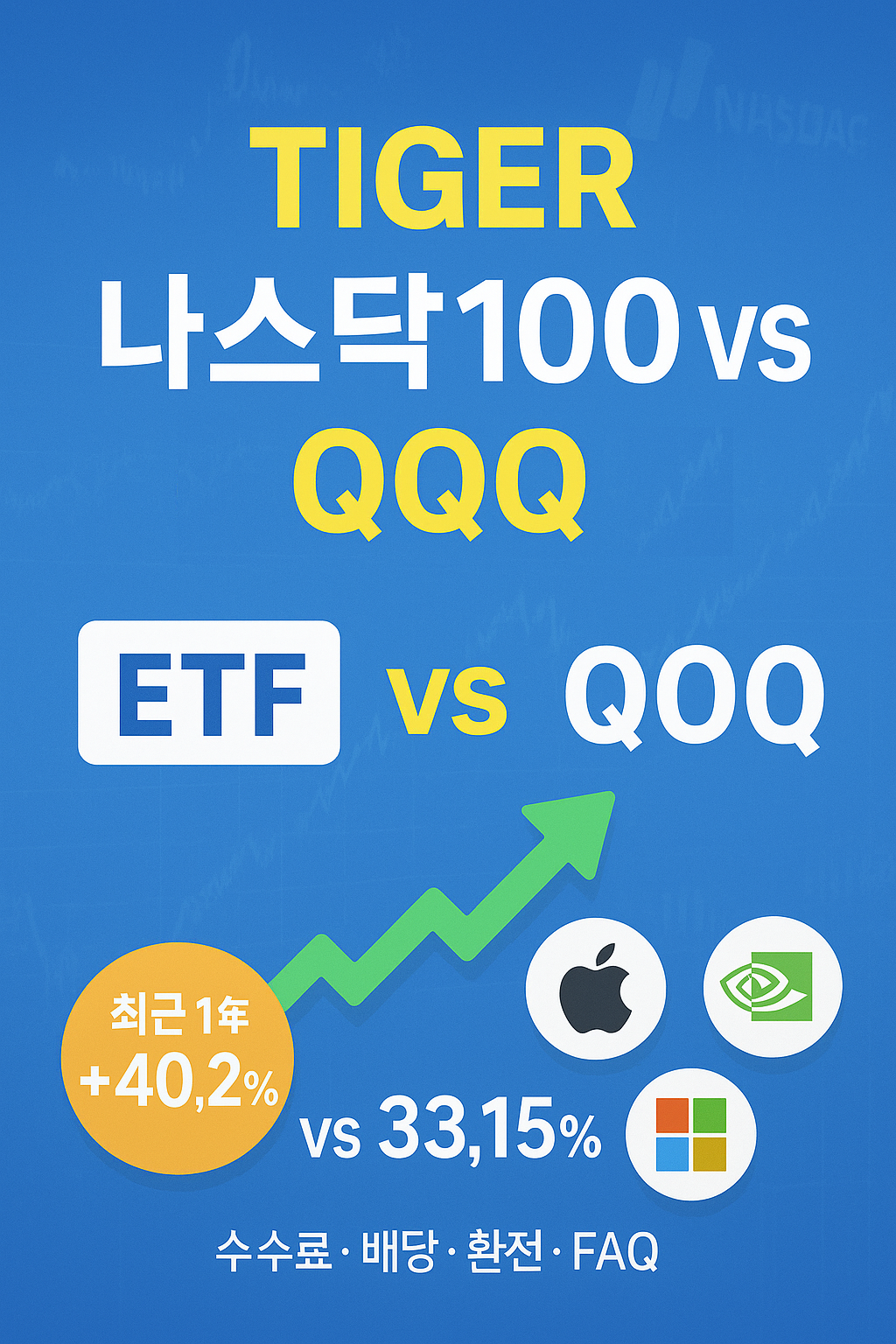 TIGER 미국나스닥100 ETF와 QQQ 모두 나스닥100의 성장성과 기술주에 투자하는 대표 상품입니다. 최근 1년간 TIGER ETF가 수익률에서 앞섰고, 수수료·환전·세금 면에서 국내 투자자에게 실용적인 대안이지만, 두 상품 모두 장기적 관점과 분산 투자가 중요합니다. 📈🚀