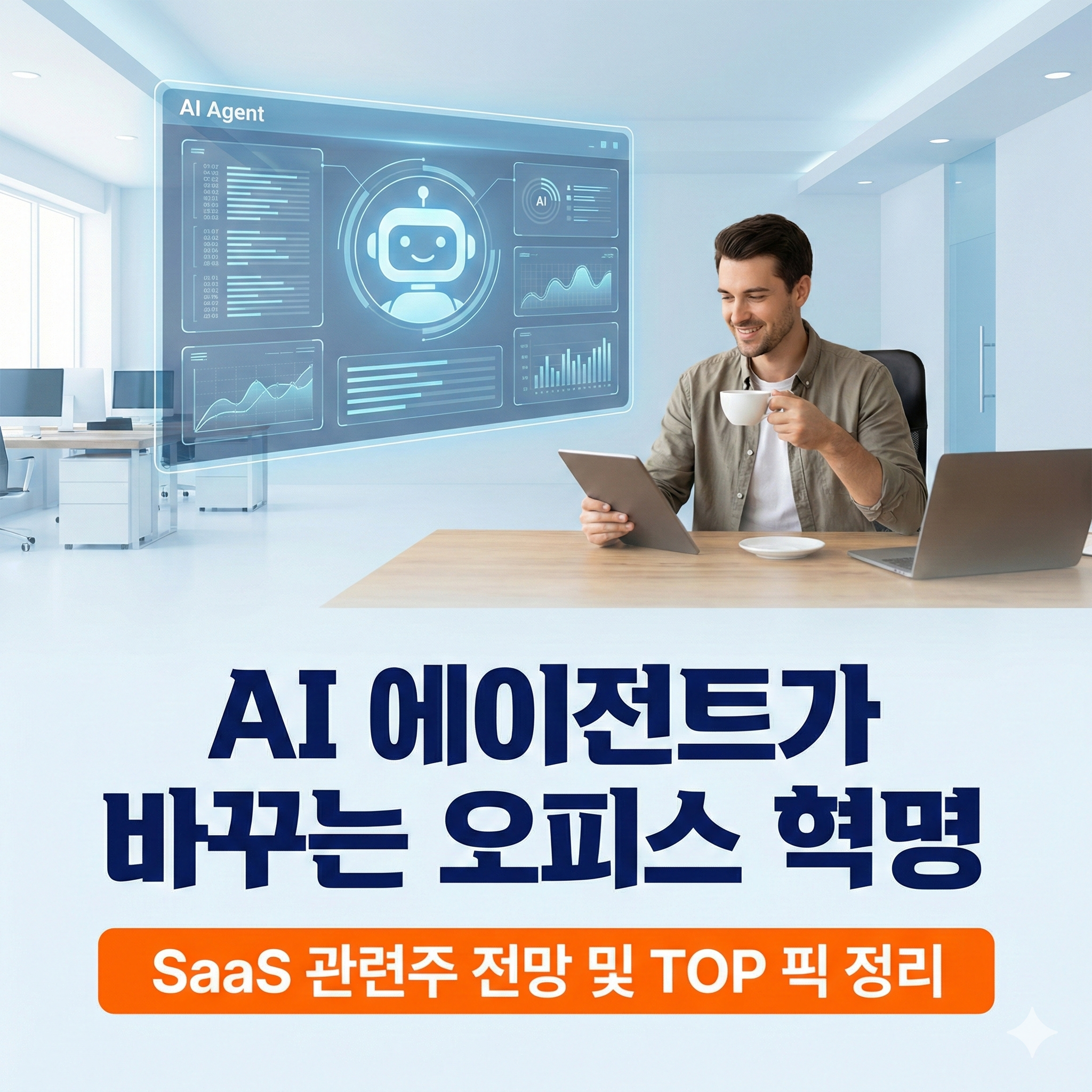 안녕하세요! 여러분의 스마트한 비즈니스 파트너입니다. 😊 최근 IT 업계의 화두는 단연 AI 에이전트(AI Agent)입니다. 단순히 질문에 답하는 챗봇을 넘어, 이제는 스스로 계획을 세우고 소프트웨어를 조작해 업무를 완수하는 '행동하는 AI'의 시대가 열렸습니다. 오늘 포스팅에서는 변화하는 오피스 환경의 실체와 투자자들이 주목해야 할 SaaS(Software as a Service) 관련주를 데이터와 함께 심층 분석해 보겠습니다!