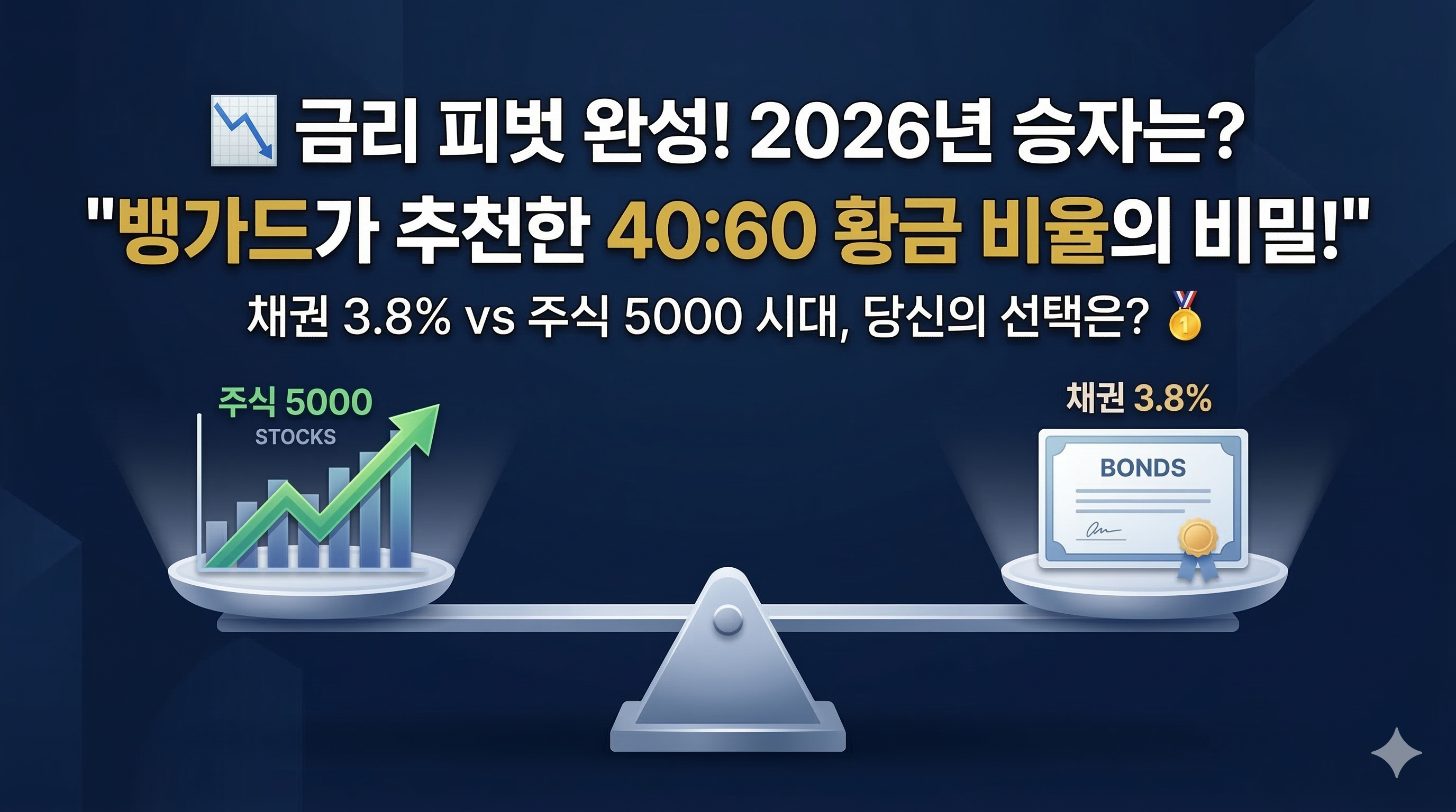 2026년은 '속도'보다 '균형'이 곧 실력이 되는 해입니다. 채권의 든든한 뿌리 위에 주식이라는 화려한 꽃을 피우는 스마트한 투자자가 되시길 응원합니다! 😊